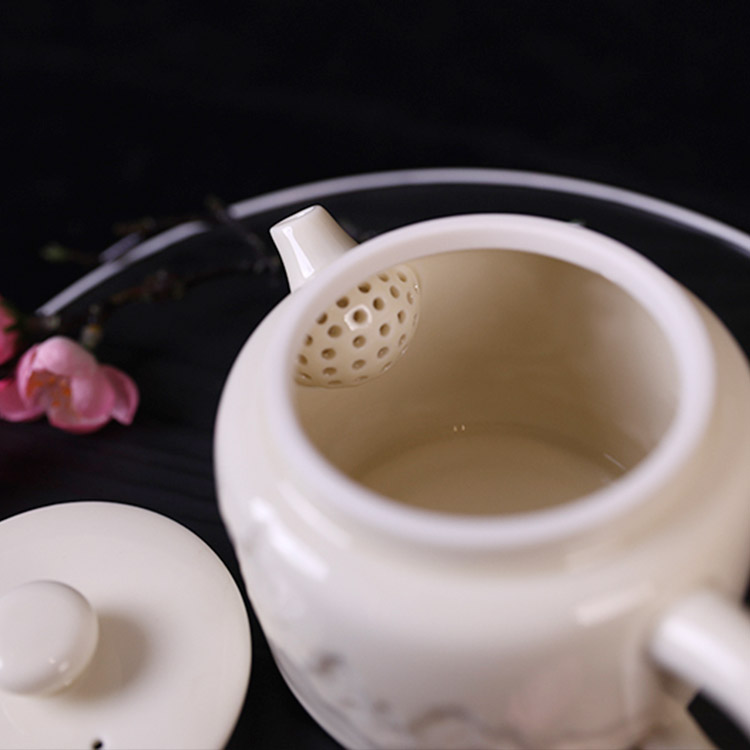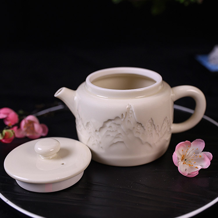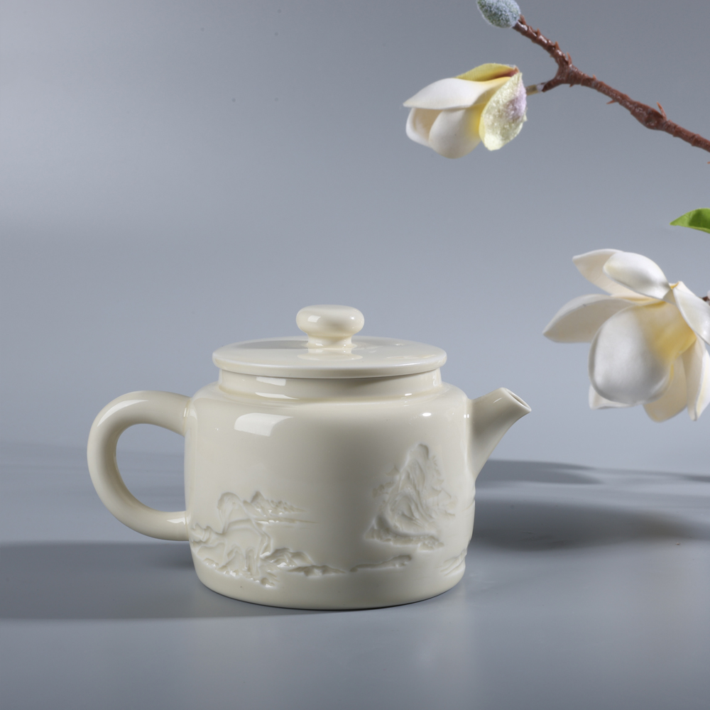 山居慢品,茶語人間。大宋定窯的一款山居茶壺,以精工雕刻之山居景色,呈現(xiàn)栩栩如生的浮雕效果。采用高溫?zé)?,釉面光滑細膩,手感舒適。釉水采用古法配方,色白且微泛黃,采用浮雕+定瓷傳統(tǒng)燒制技藝,彰顯原礦胎釉的古風(fēng)之美。