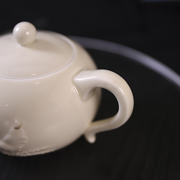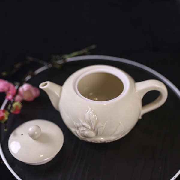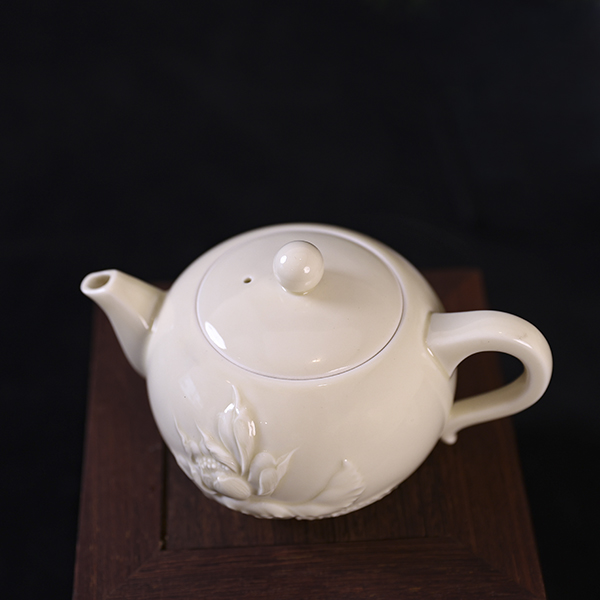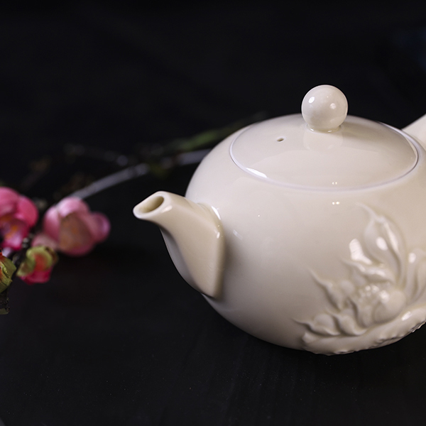 荷香壺的外壁刻有荷花紋飾,簡約古雅,釉水配方色白且微泛黃,成器釉色有“象牙白”之稱,玉質(zhì)感足。以傳統(tǒng)工藝與現(xiàn)代審美的融合,彰顯原礦胎釉的古風(fēng)之美。