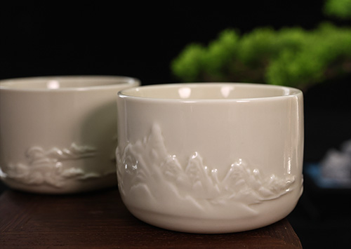 此大宋定窯主人杯杯名“山居”,即以精工雕刻之山居景色,呈現(xiàn)栩栩如生的浮雕效果。胎釉取材于古定窯遺址保護(hù)區(qū)范圍內(nèi),以傳統(tǒng)工藝與現(xiàn)代審美的融合,彰顯原礦胎釉的古風(fēng)之美。